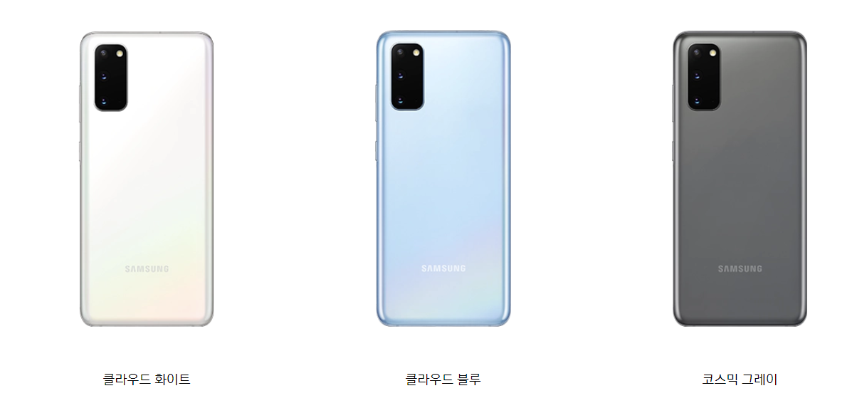 갤럭시 S20은 총 3가지 색상으로 출시가 되었으며, 화이트 / 블랙 / 블루 색상으로 나눠져 있습니다. 저는 블루 색상을 구매했으며 보통 블랙색상을 많이 사용했지만 이번만큼은 블루 색상으로 산뜻한 스마트폰을 사용하고 싶었습니다... 지금도 사용하고 있지만 색상이 쨍하여 이쁩니다. 밝은 색상을 좋아하신다면 블루 색상을 고르셔도 만족하실 것 같습니다. 아쉬운 점은 갤럭시북 플렉스의 쨍한 파란색이 없어 아쉬웠습니다. 저는 진짜 이색깔 엄청 좋아하는데, 예전에 출시할 때 용달 블루라는 색상으로 놀림을 받아... 이제는 출시가 안 되는 것 같습니다. 하지만 이번 클라우드 블루 색상은 고급스러우면서 산뜻한 이미지를 보여줄 수 있는 갤럭시만의 색상이라는 생각이 들었습니다. 색상은 개인마다 취향이 있기에 3가지 색상 중 자신에게 맞는 색상을 선택하시면 될 것 같습니다. :)