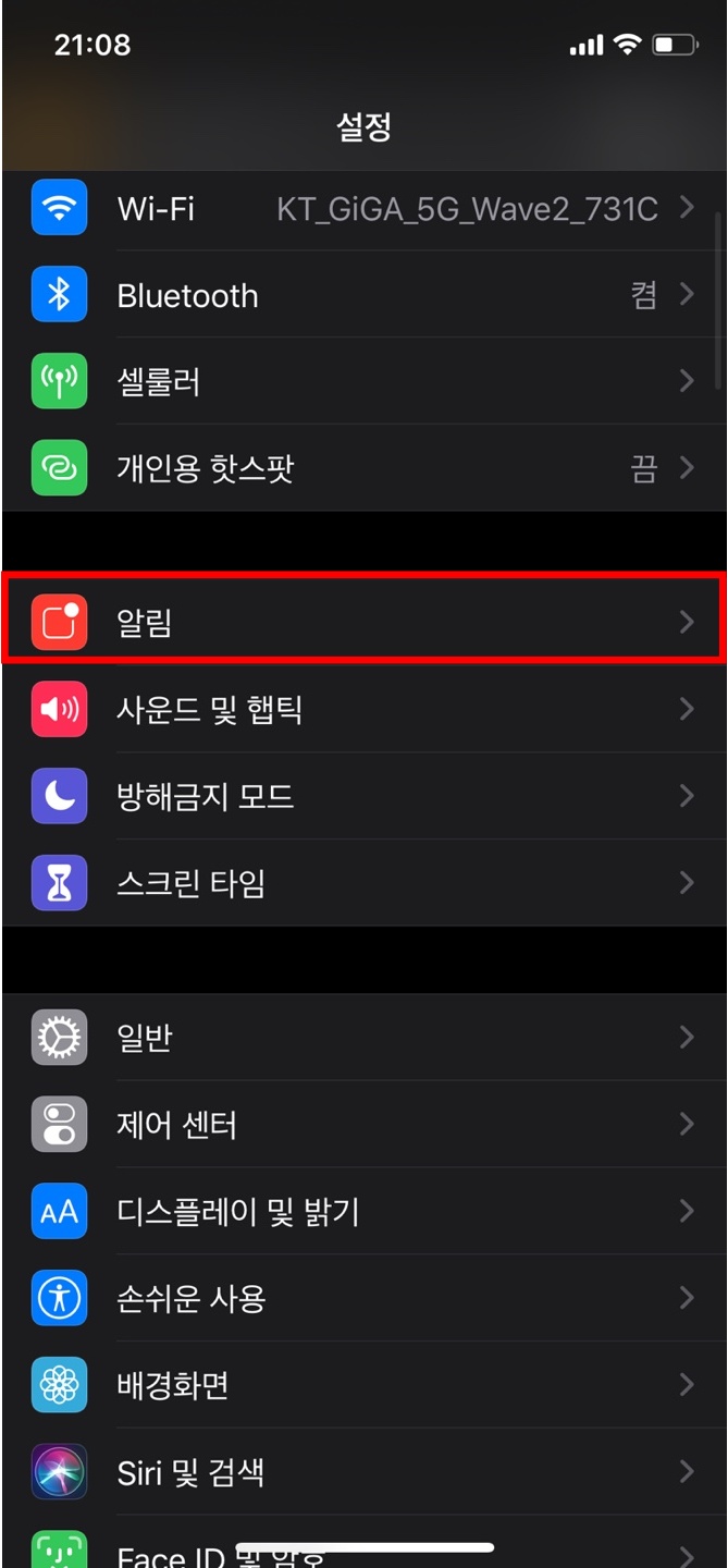 우선 아이폰에서 '설정'을 터치하여 우선 들어가야 합니다. 설정에 들어가면 WI-FI 등 다양한 설정을 할 수 있는 창이 나옵니다. 여기에서 스크롤을 쭉 아래로 내려 '메시지'항목을 선택하여 재난문자설정을 찾으시는 분들이 계실겁니다. 하지만 아이폰은 메시지 항목에서 찾는 것이 아닌, '알림'항목에서 재난문자설정을 진행할 수 있습니다. 어떻게보면 재난문자라는 것은 알림에서 오는 것이라고 생각하시면 쉽게 이해할 수 있을 것이라고 생각합니다.