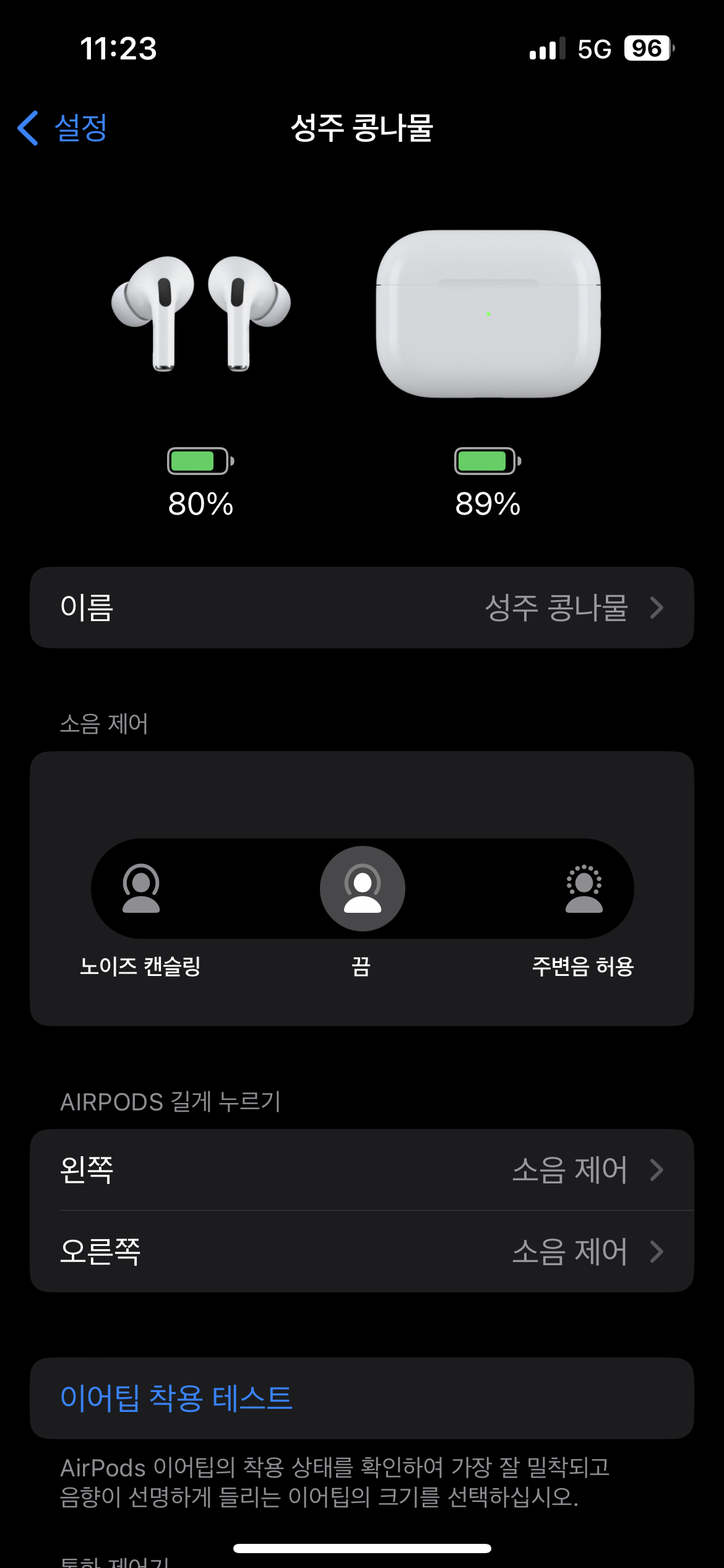 기본적으로 설정을 마치게 되면, 소음제어 -> 길게 누르기 설정 -> 이어팁 착용 테스트 등 다양한 설정창을 확인할 수 있는데, 처음 사용에 있어 추천드리는 설정을 말씀드리겠습니다!