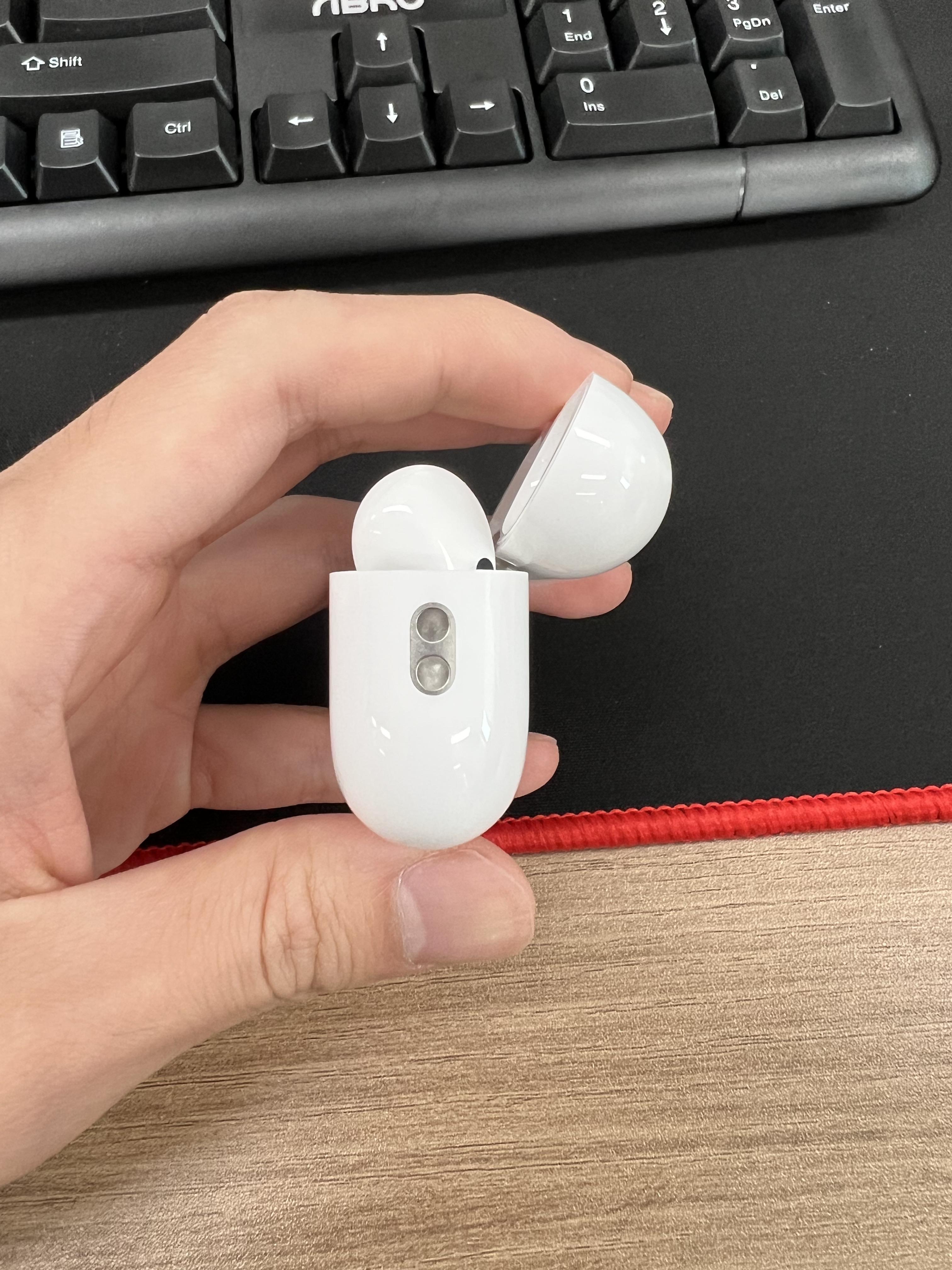 * 기존 에어팟프로1 기종과 크게 달라진점은 없는 것 같습니다. 우측에 랜야드 루프가 탑재가 된 부분과 하단 스피커가 외관상 큰 차이점이라고 볼 수 있습니다.