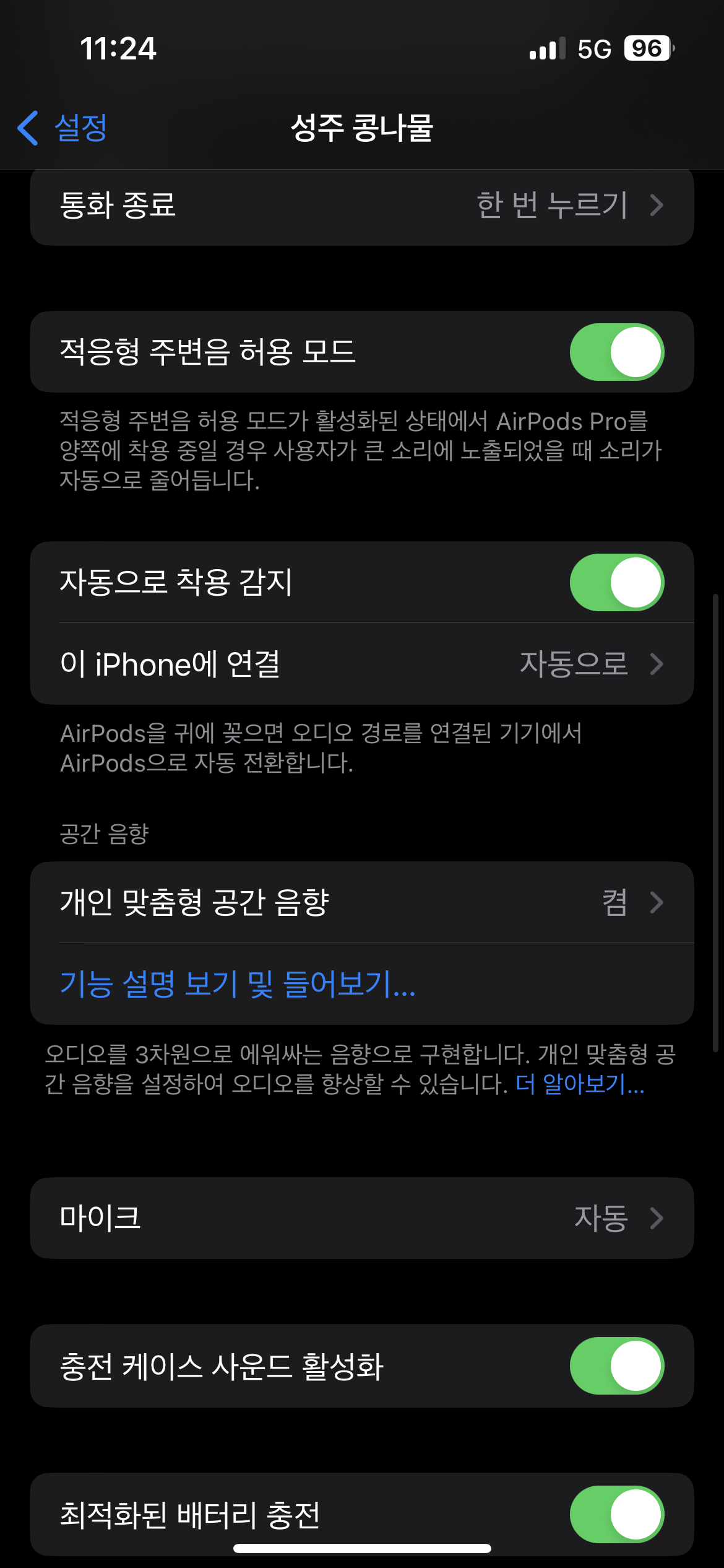 2) 적응형 주변음 허용 모드 : 또한, 적응형 주변음 허용 모드가 적용이 되었습니다. 이 기능은 큰 외부소음은 줄이고 말소리와 같은 들려야 하는 소리는 들리게끔 하는 기능이라고 하는데, 현재까지 사용하면서는 크게 느끼지는 못했습니다. 이부분은 차후 더 사용을 해보면서 상세한 리뷰를 해드리도록 하겠습니다.